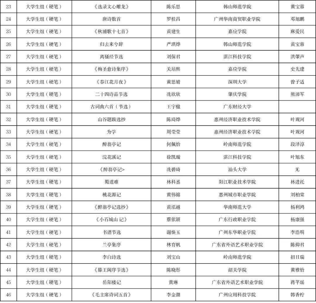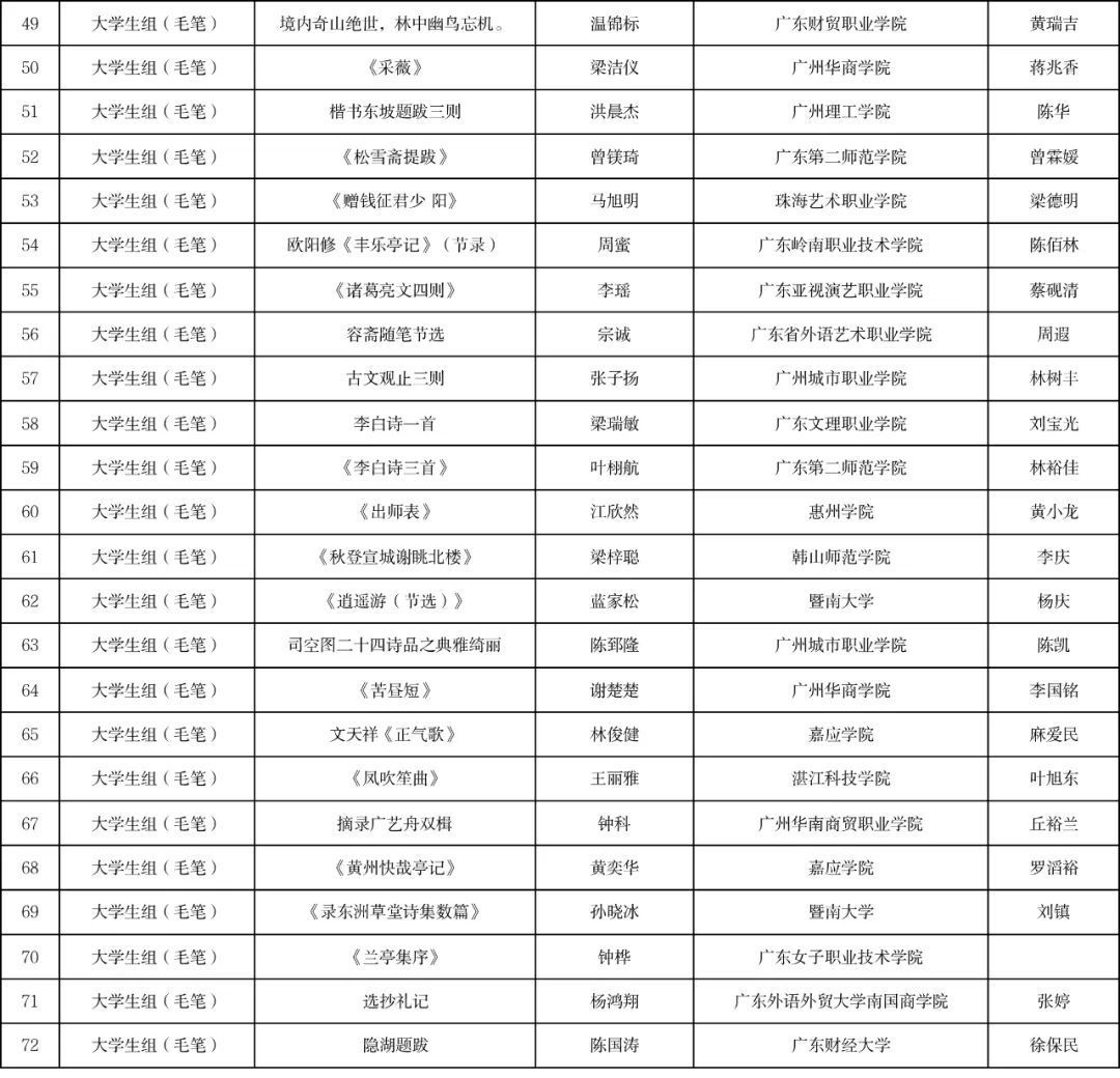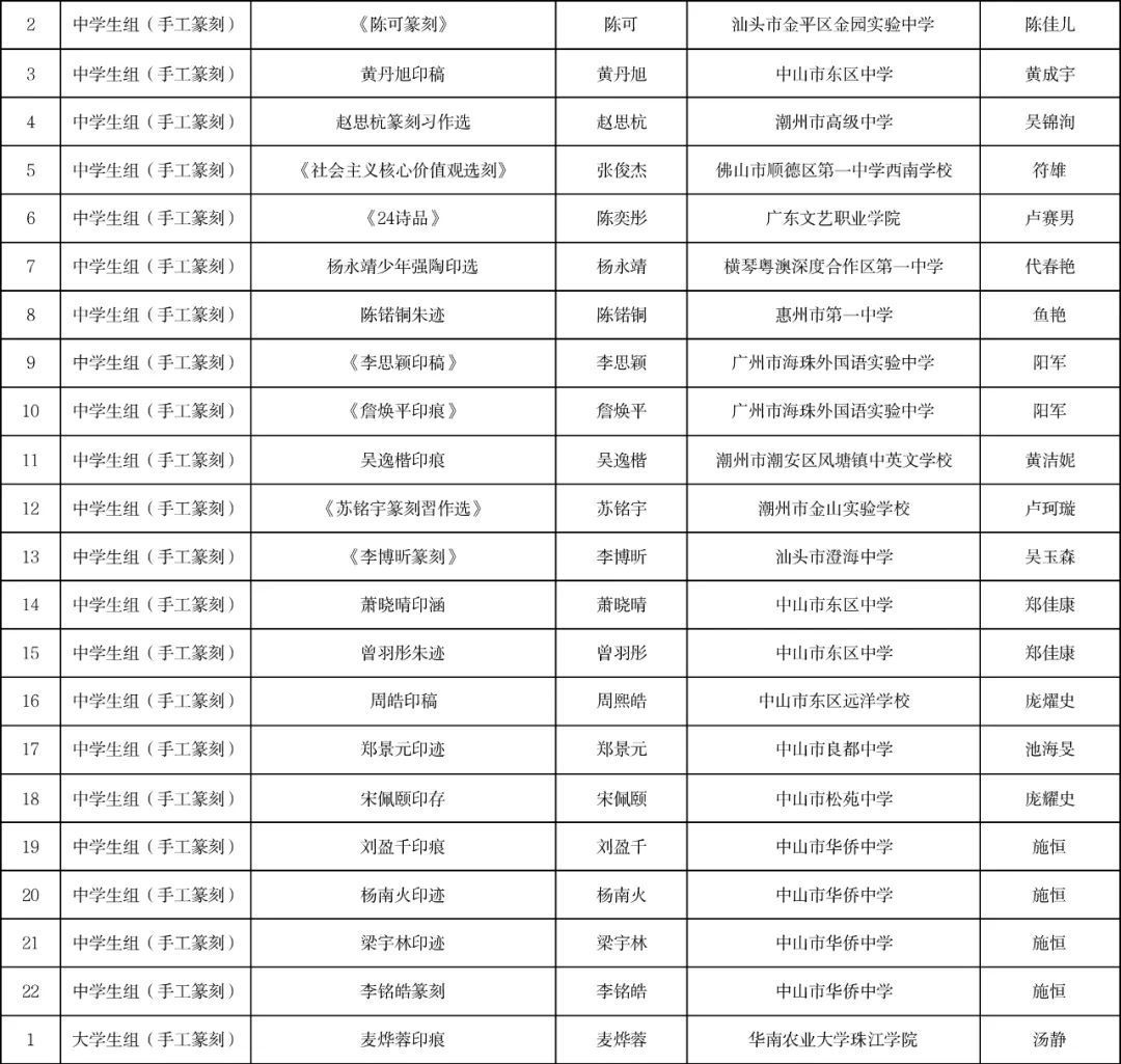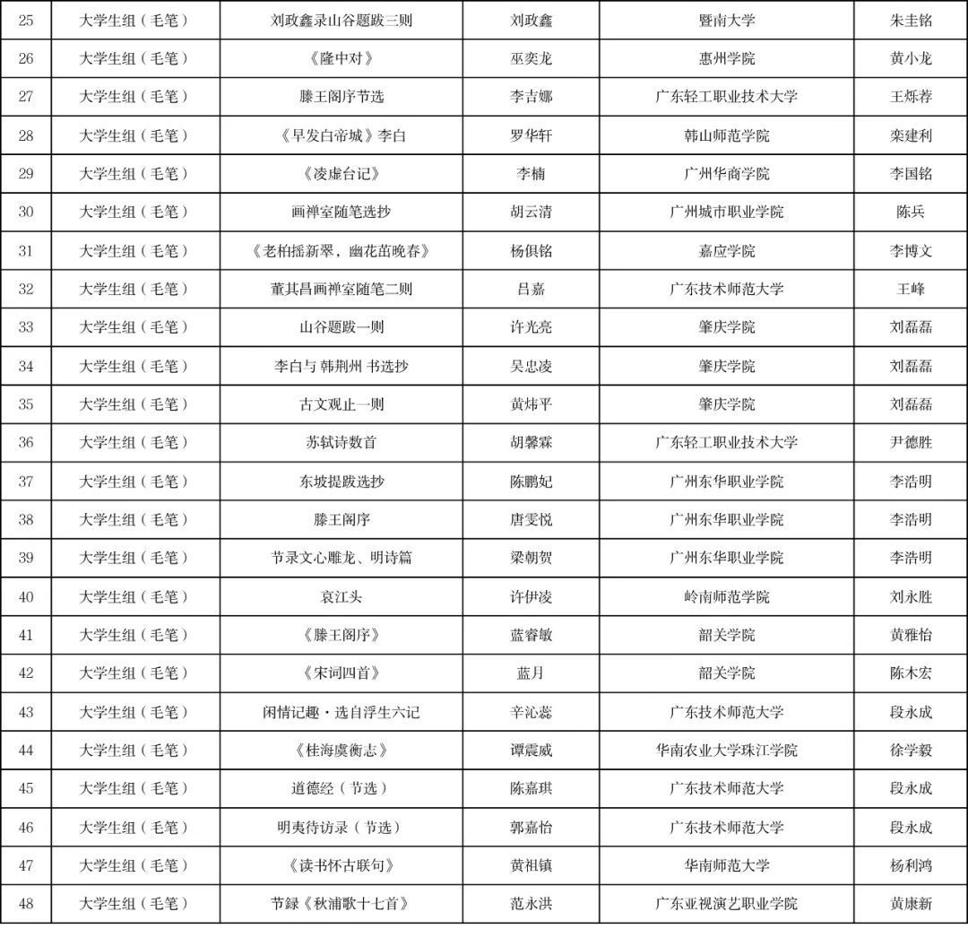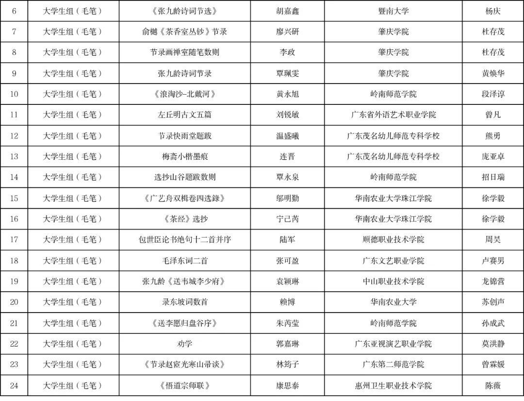 根据教育部、国家语委要求,截至各赛项截止日期,经过各单位初赛遴选,广东省各地市、各高等院校、省属中等职业学校、省属中小学校共推荐诵读大赛有效参赛作品(视频)1080个,讲解大赛有效参赛作品(视频)1025个,书写大赛有效参赛作品 4381个,篆刻大赛有效参赛作品830个。经过评审专家组公平、公正、严格的评审,现将2025年广东省中华经典诵写讲大赛拟入围国赛及省决赛名单面向社会公示。公示期自2025年7月1日至2025年7月5日,共五天。