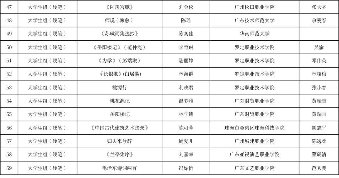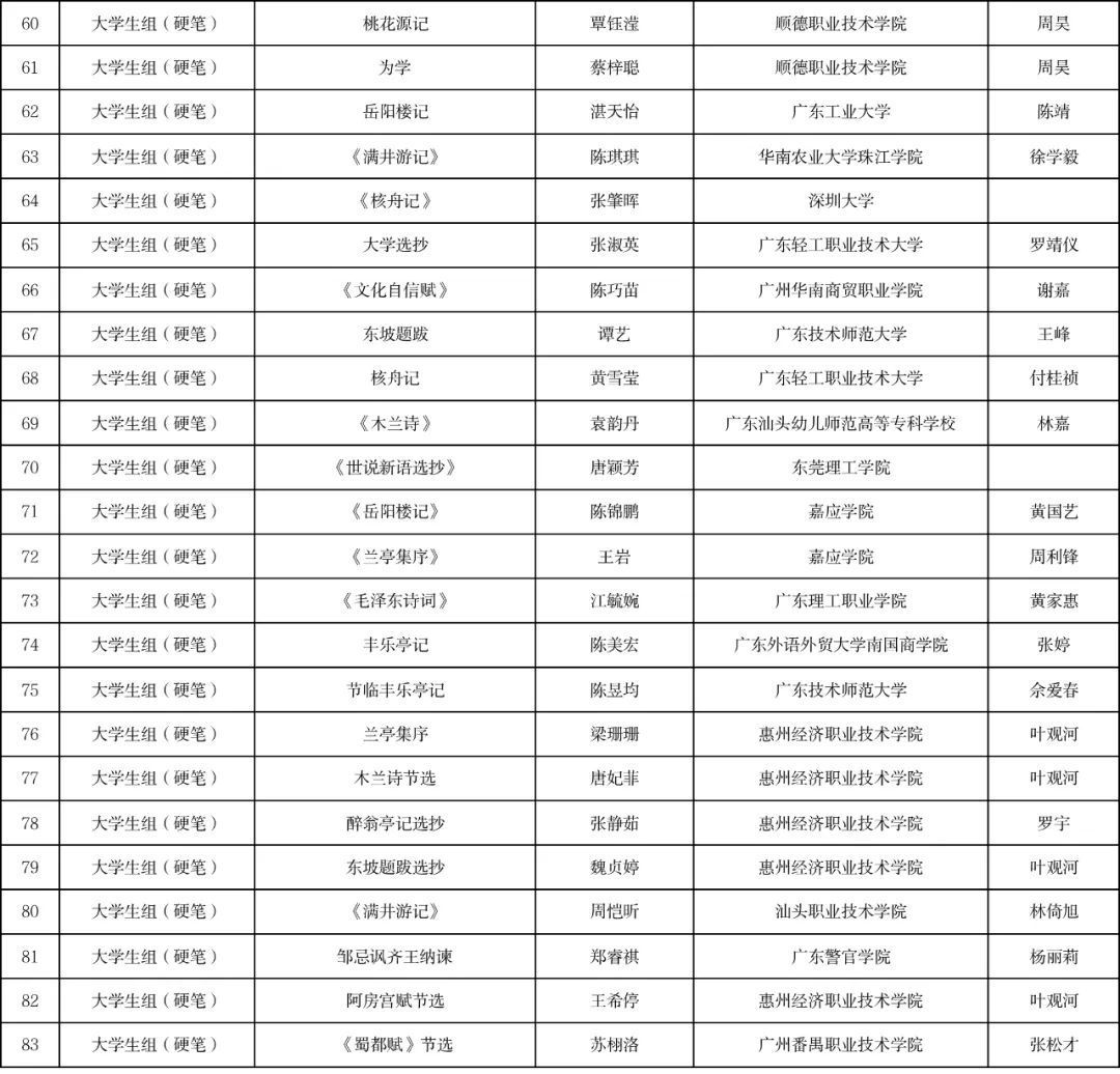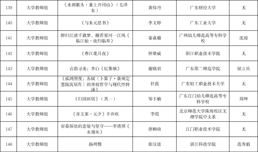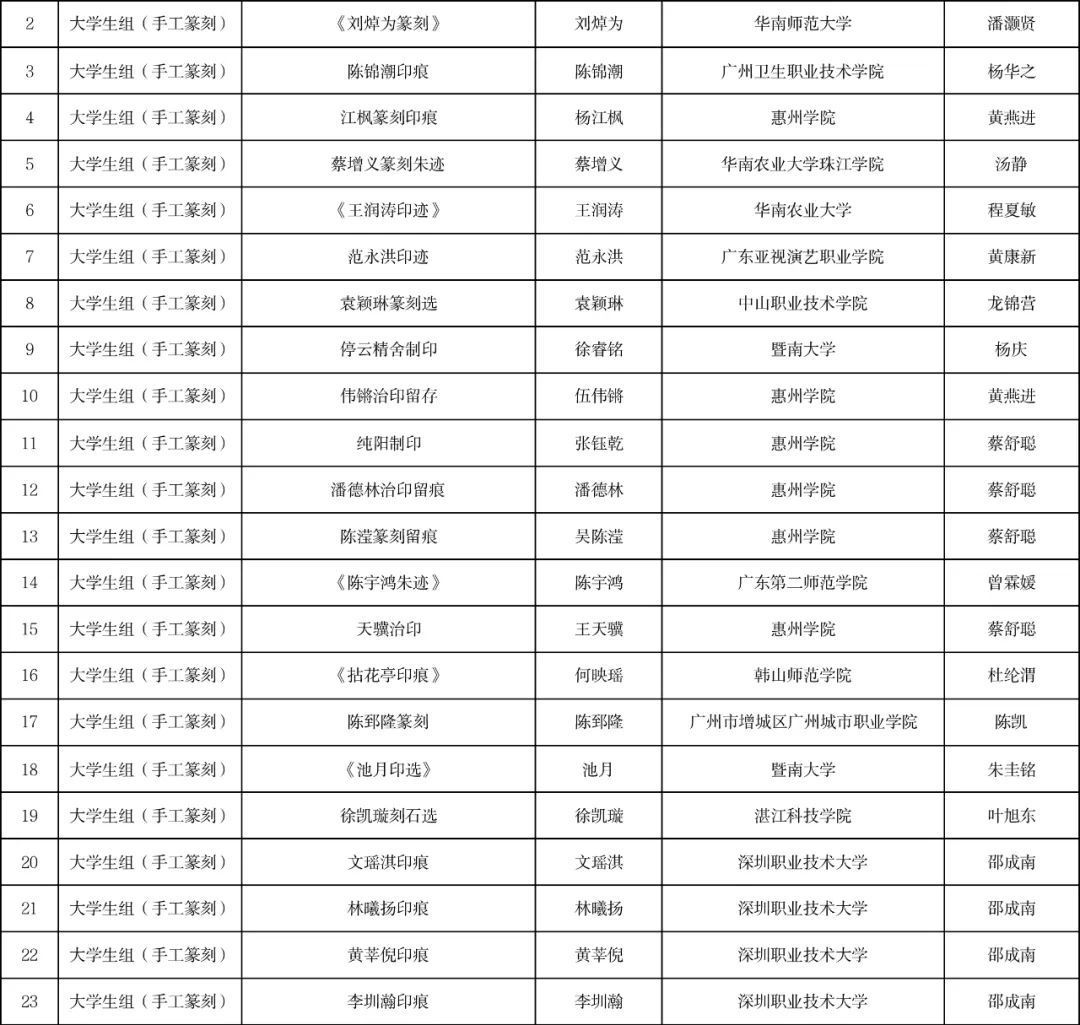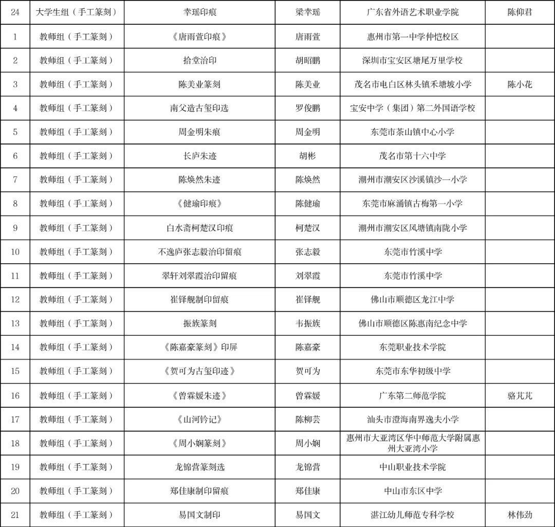 根据教育部、国家语委要求,截至各赛项截止日期,经过各单位初赛遴选,广东省各地市、各高等院校、省属中等职业学校、省属中小学校共推荐诵读大赛有效参赛作品(视频)1080个,讲解大赛有效参赛作品(视频)1025个,书写大赛有效参赛作品 4381个,篆刻大赛有效参赛作品830个。经过评审专家组公平、公正、严格的评审,现将2025年广东省中华经典诵写讲大赛拟入围国赛及省决赛名单面向社会公示。公示期自2025年7月1日至2025年7月5日,共五天。