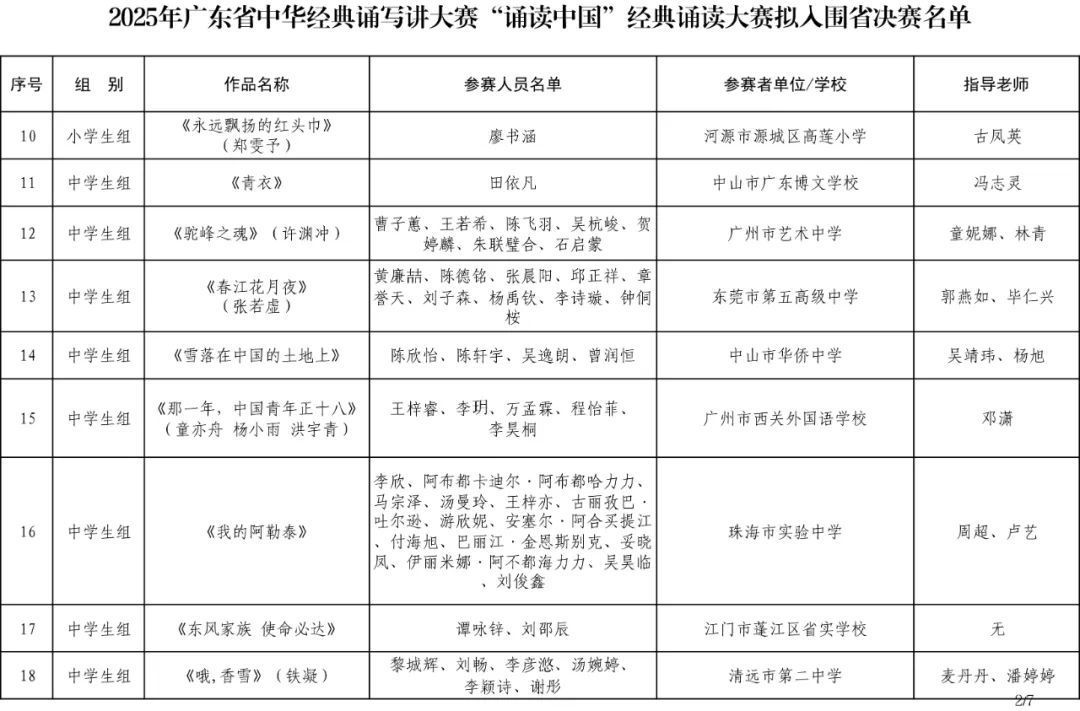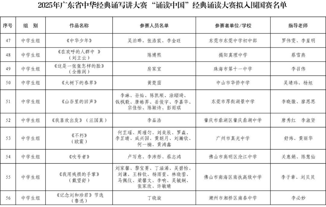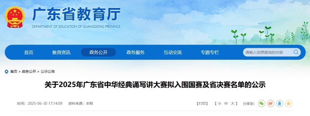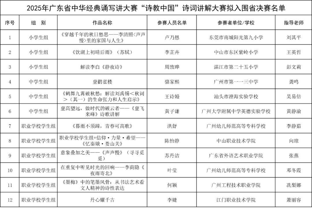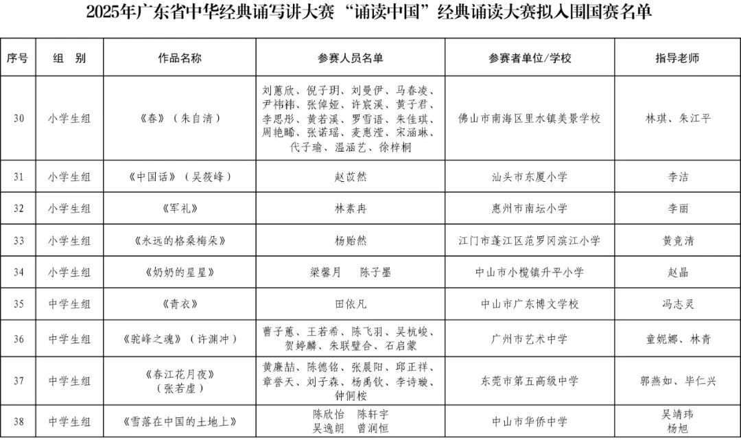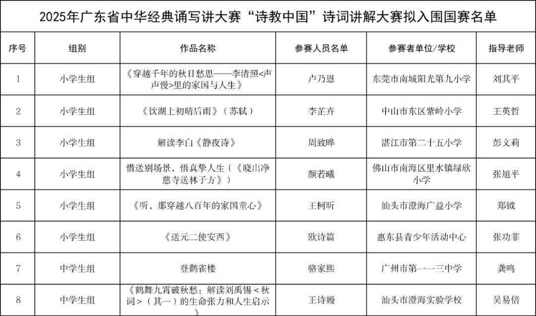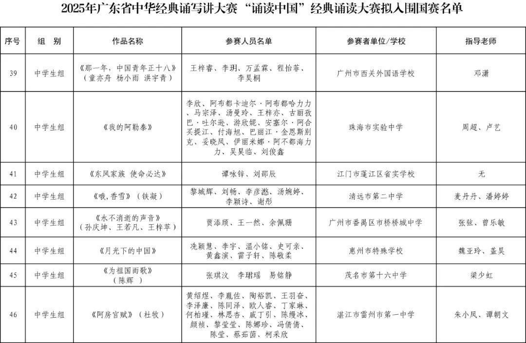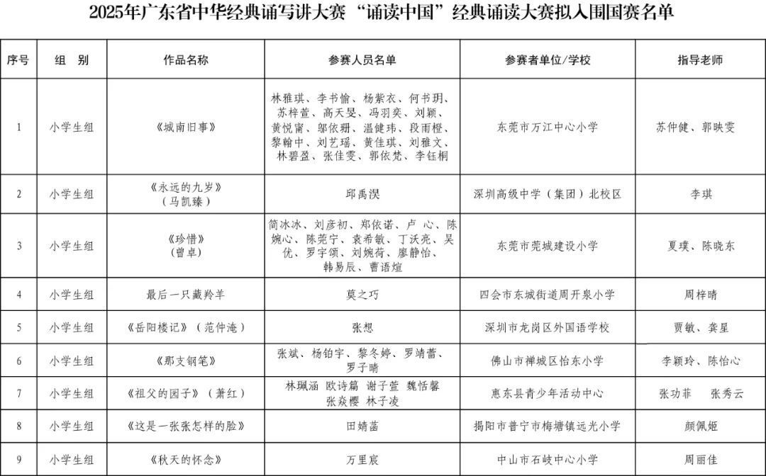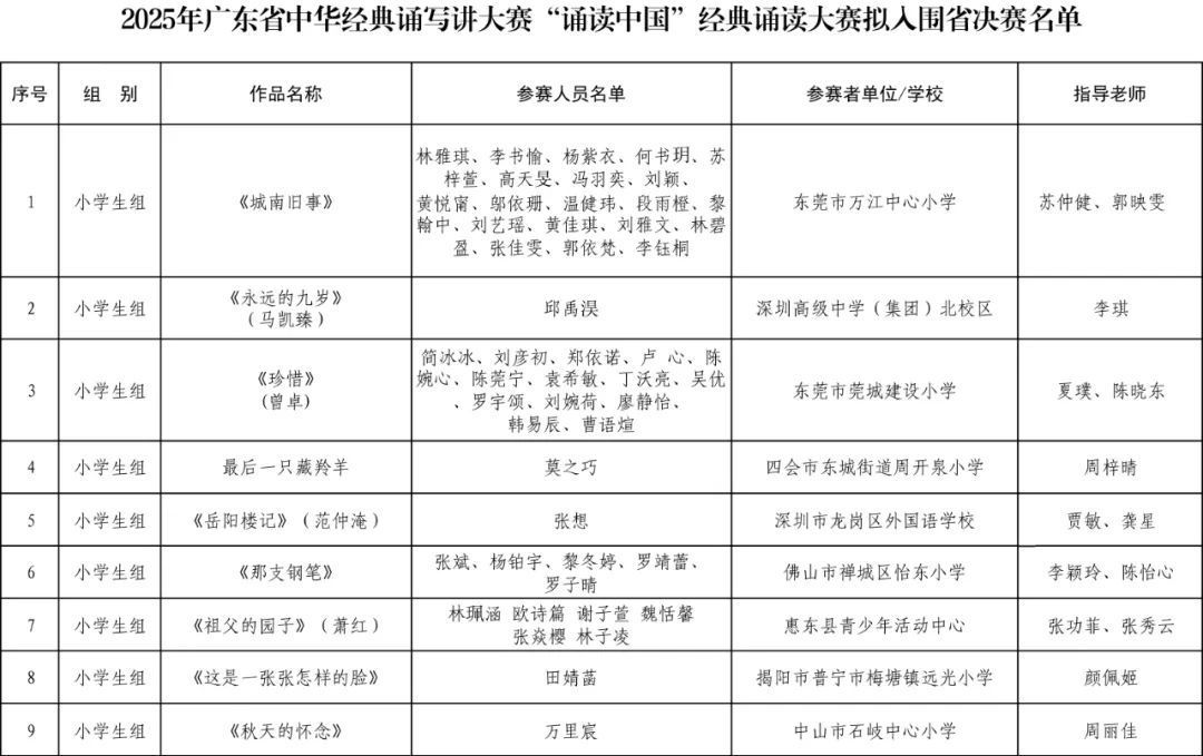 老师、同学看过来,2025年广东省中华经典诵写讲大赛(点此查看通知详情)拟入围国赛及省决赛名单开始公示啦!