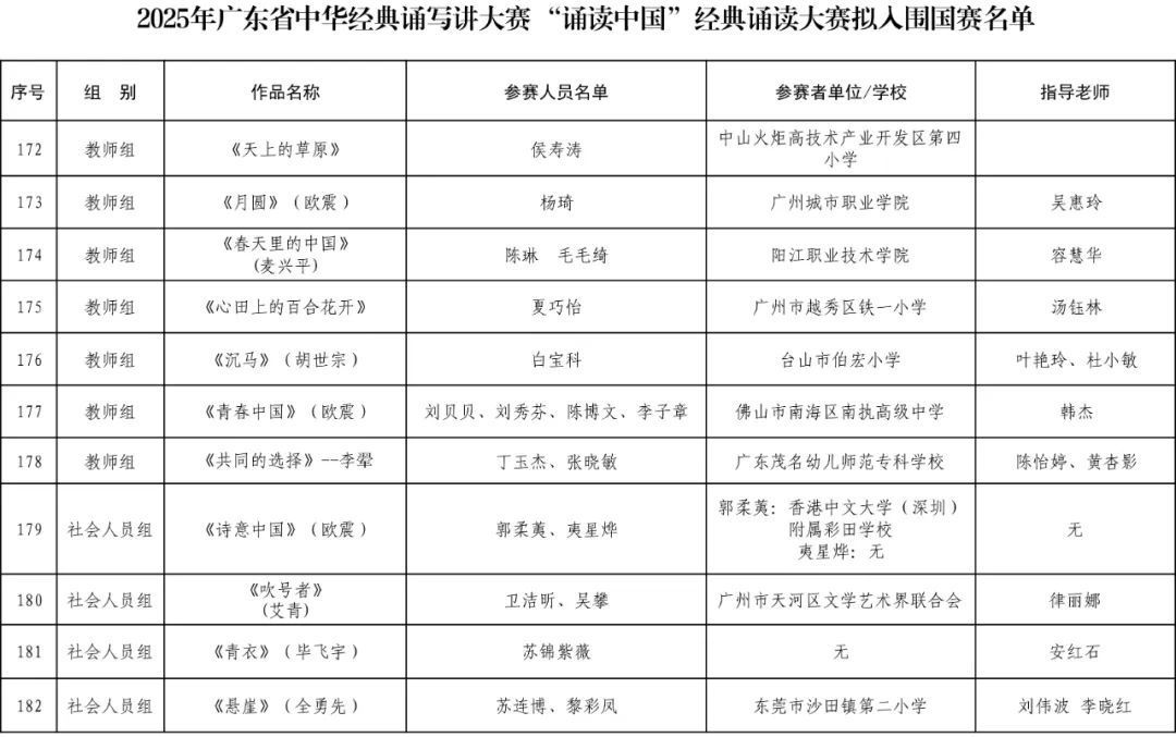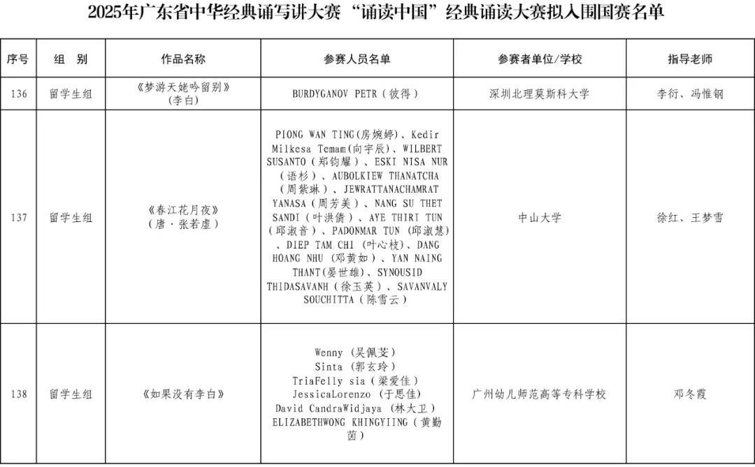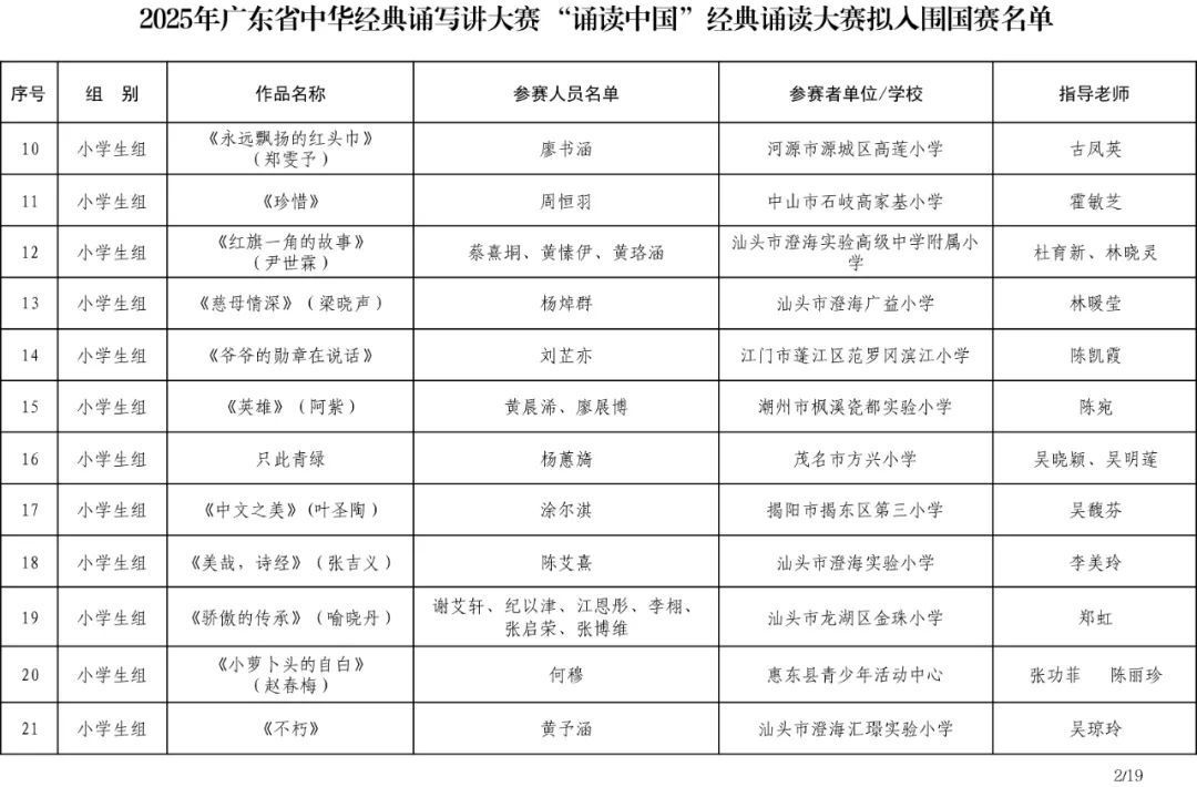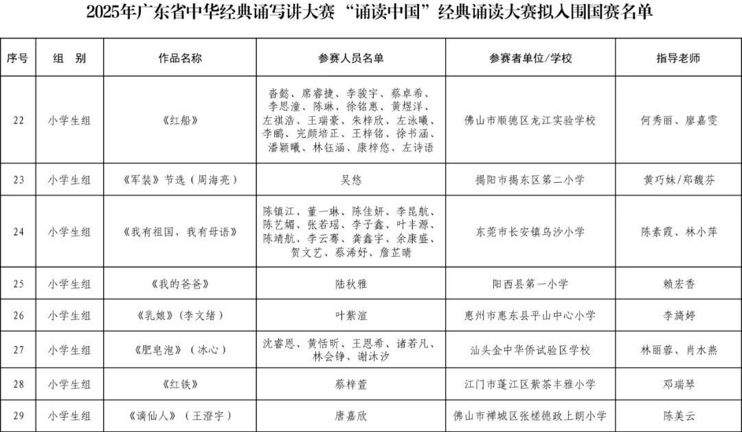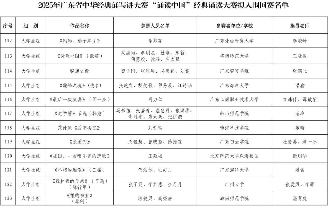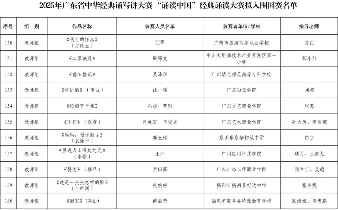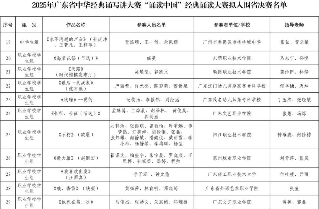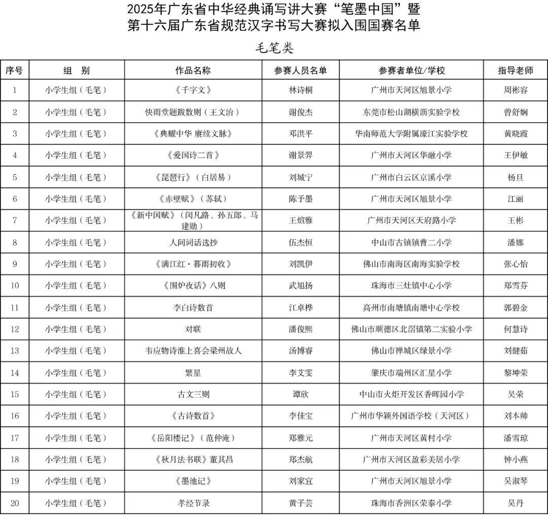 老师、同学看过来,2025年广东省中华经典诵写讲大赛(点此查看通知详情)拟入围国赛及省决赛名单开始公示啦!