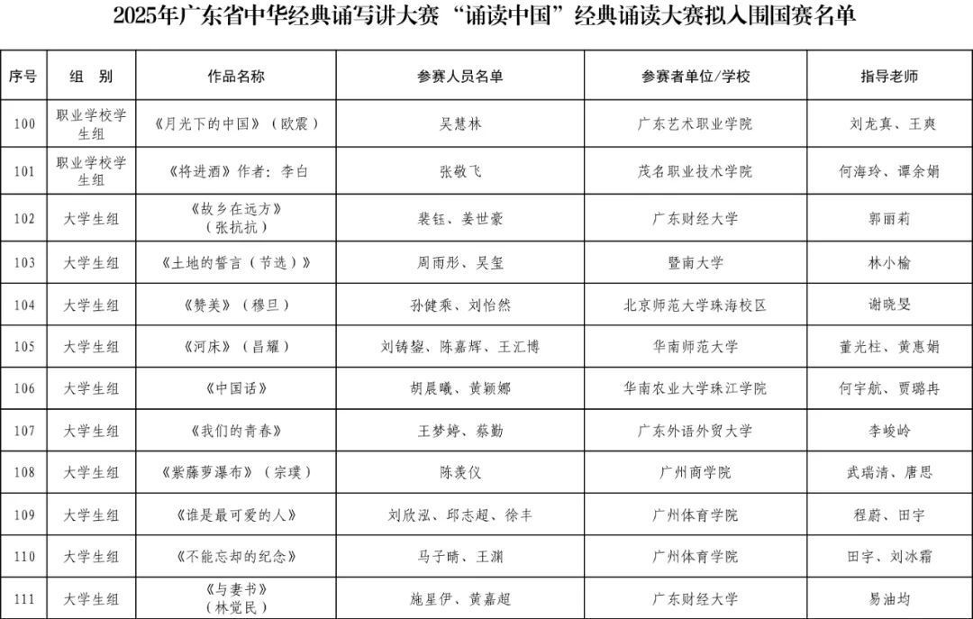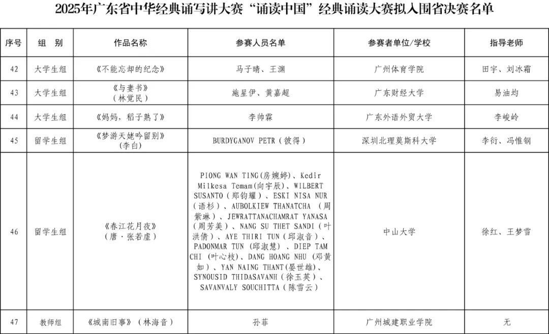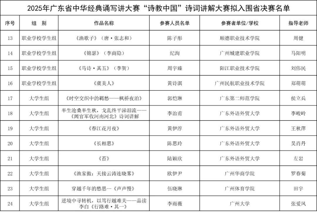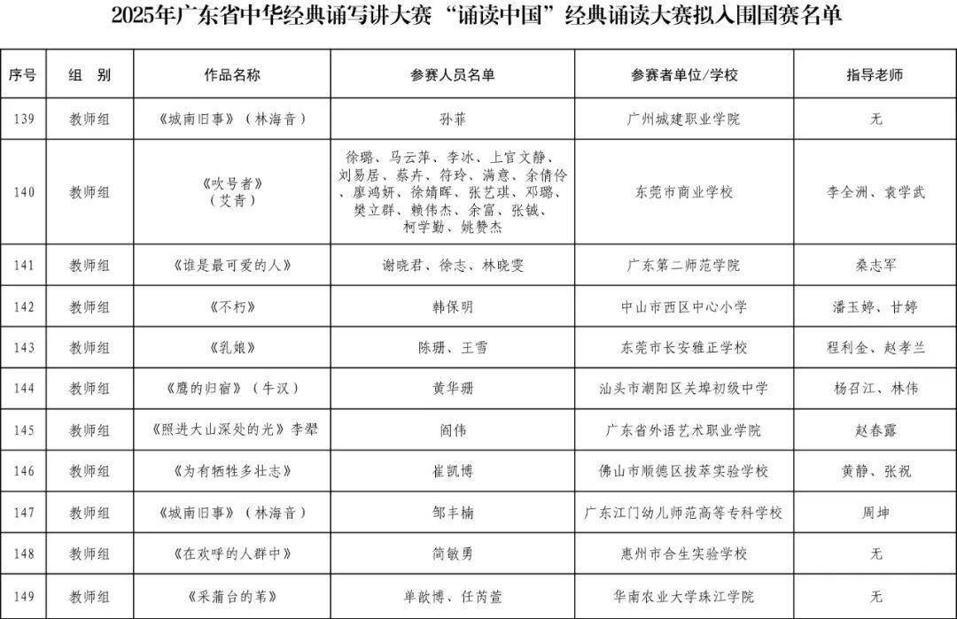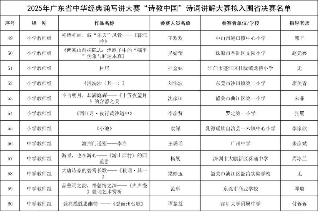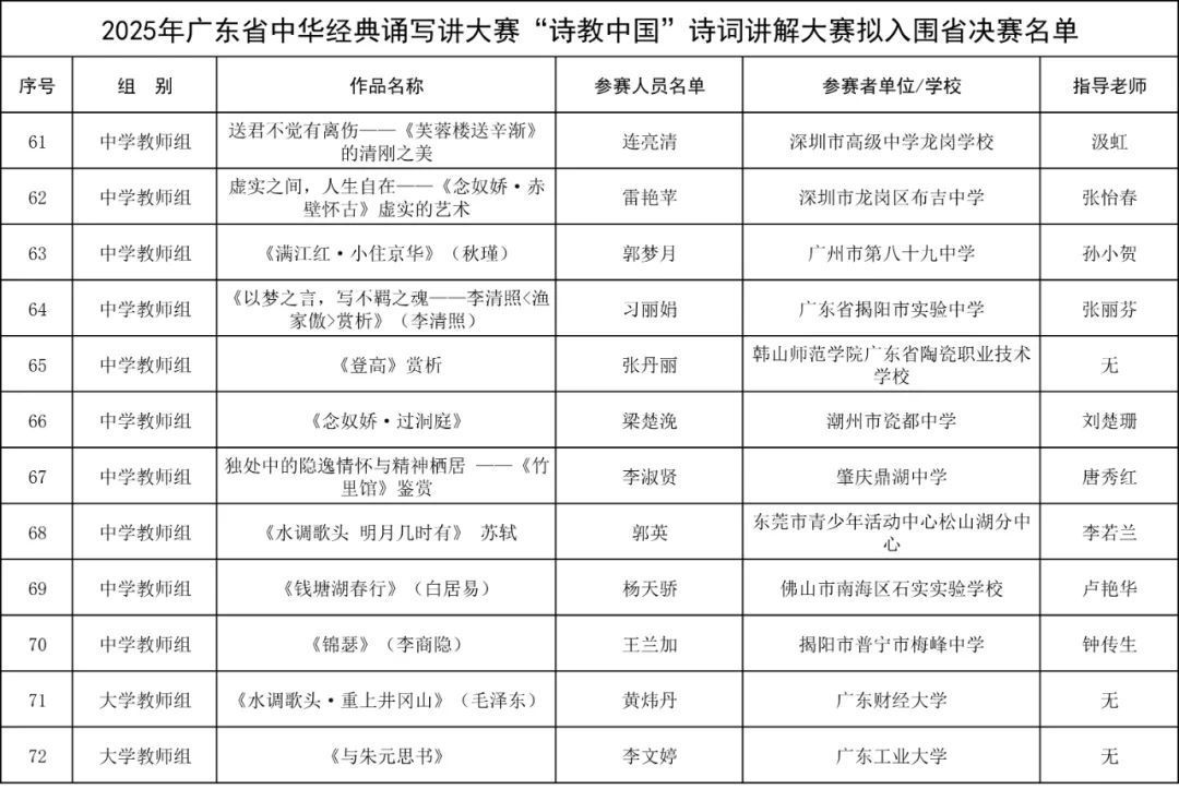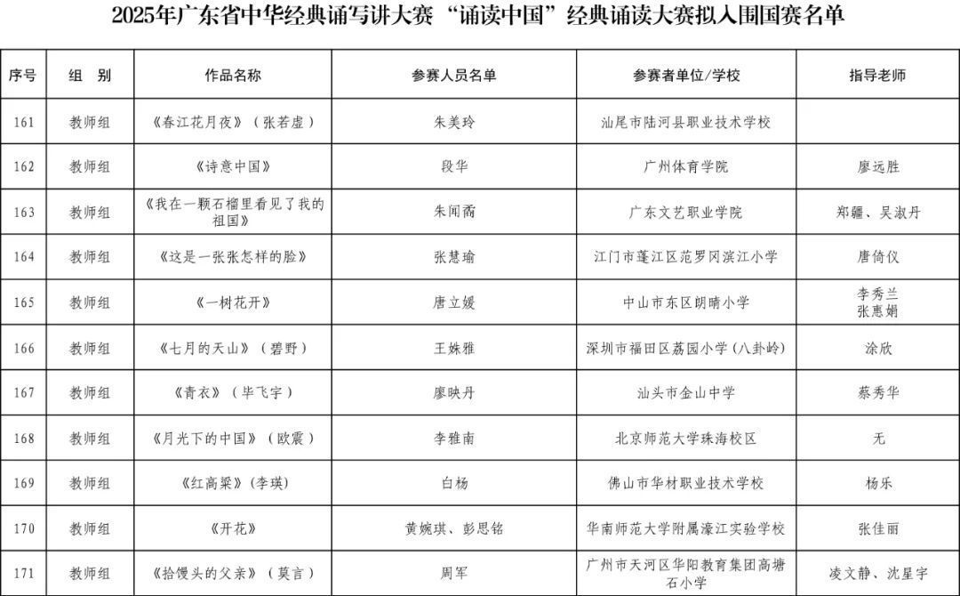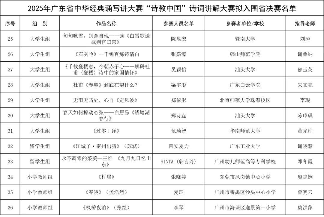 老师、同学看过来,2025年广东省中华经典诵写讲大赛(点此查看通知详情)拟入围国赛及省决赛名单开始公示啦!