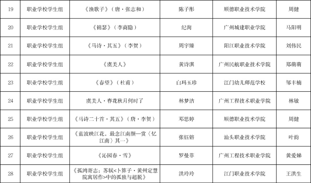 按照广东省教育厅、广东省语言文字工作委员会《关于举办2025年广东省中华经典诵写讲大赛的通知》精神,我省举办了2025年广东省中华经典诵写讲大赛“诵读中国”经典诵读大赛(简称诵读大赛)、“诗教中国”诗词讲解大赛(简称讲解大赛)、“笔墨中国”规范汉字书写大赛(简称书写大赛)、“印记中国”师生篆刻大赛(简称篆刻大赛)四个赛项。