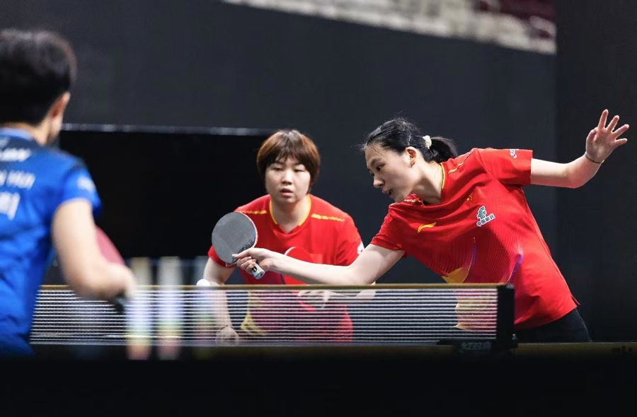 国乒在女双和混双赛场均三战告捷。将近一年没有配对的蒯曼/陈熠以3比1战胜第一次搭档的申裕斌/朱芊曦,本场比赛四局中有三局打到关键分。蒯曼表示:“确实场上赢得非常惊险,但我俩的沟通、状态和衔接总体做得挺好。”另两对国乒女双组合石洵瑶/王晓彤、覃予萱/纵歌曼均横扫对手晋级,将在次轮提前相遇。